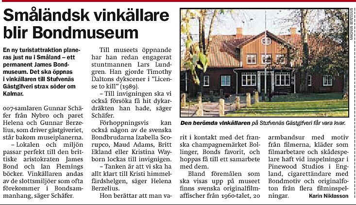 The James Bond 007 Museum Sweden Nybro 007museum@telia.com