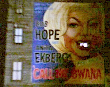 döljs av munnen av Anita Ekberg i en affisch för en film som
