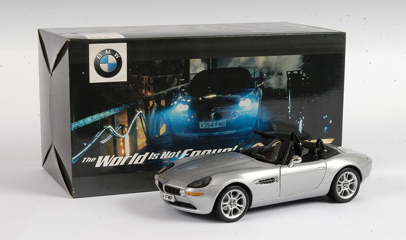 JAMES BOND BMW Z8 THE WORLD IS NOT ENOUGH Made exclusively for BMW to tie in with the worldwide release of The World Is Not Enough, these beautifully made scale models of the BMW Z8 are exceptionally detailed. Our stock is very limited and once sold we do not expect to obtain any further examples. Model approximately 100mm (4 inches) long. - S 1:43 |