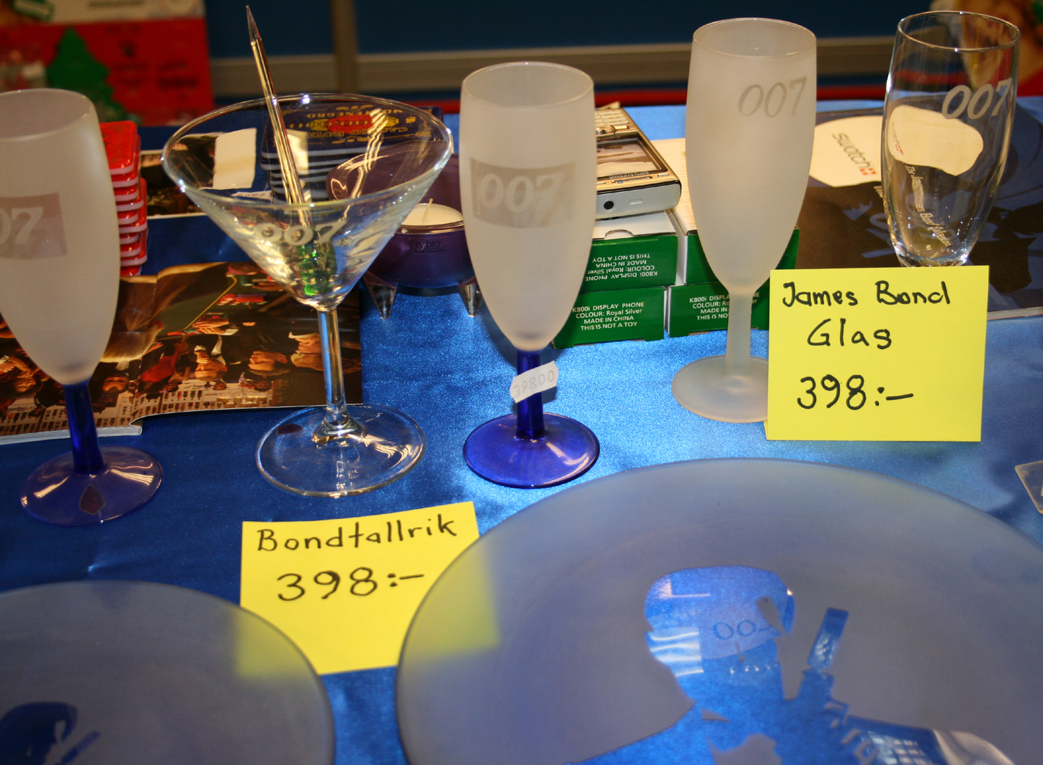 ![]() Dry Martini or Champagne glass each Euro 40 Pris 398:- James Bond 007 Dry Martini glas och 007 champagne glas i frostat och glasklart med 007 logo som är inblästrat i glasen. Finns att köpa på 007 museet i Nybro 0481-12960 |