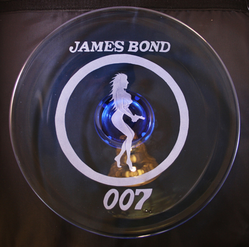 James Bond glass plate, design from James Bond 007 Museum in Sweden, Nybro. Dry Martini glass, 007Champagne glass