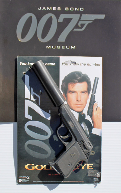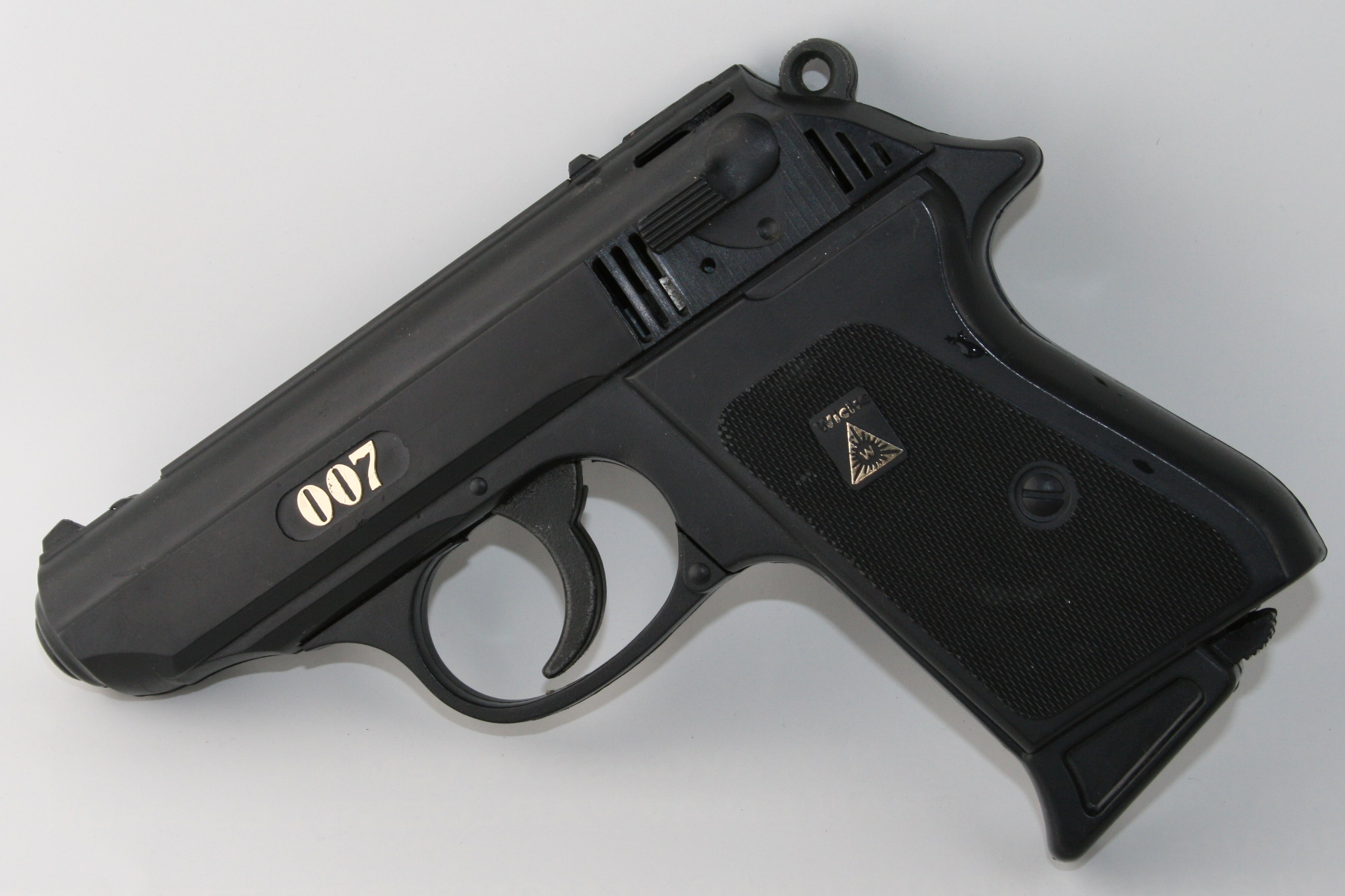 PPK 7,65 mm out of stock(Dr. No - Tomorrow Never Dies) and QUANTUM OF SOLACE Gadget: Walther PPK Bond's classic gun, the Walther PPK is introduced in Dr. No when 007's Beretta is replaced by Major Boothroyd, the armourer of the secret service, after a nasty incident when it jammed. Ever since, it has become legendary as the weapon of a secret agent. It's small size with a flat design make it ideal for concealment and the 7.65mm calibre with a 6 round magazine pack a powerful punch. The PPK was introduced in the early 1930's and was initially marketed as a pistol for the German "Criminal Police" (undercover detectives). Ian Fleming chose it as Bond's weapon after consulting with a weapons expert named Boothroyd. The Walter PPK has been Bond's weapon of choice since the Dr No mission. However Bond had previously been using a Berretta, which was not up to MI6 standards. The PPK has saved Bond's life on a countless number of occasions. The first victim to the PPK, and Bond's trigger finger was