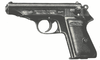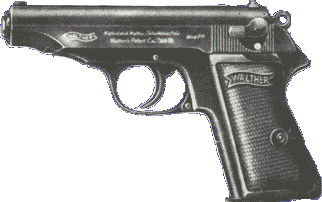 PPK. 7.65 mm, with a delivery like a brick through a plate glass window.