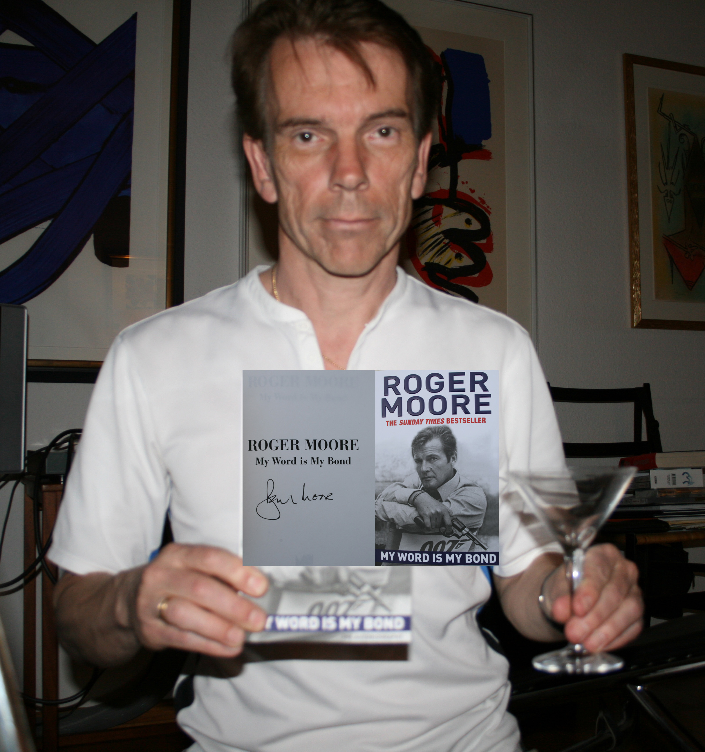This book Roger Moores signed "My word is my Bond" came to me via London to where I met Roger Moore signed a who left my book James Bond: "En fadersgestalt" signed by me Gunnar James Bond Schäfer as Roger Moore now has in his own words . He has been working for half a century, played 118 episodes of "Helgonet" and loved in "Persuaders 24 episode" but there is no doubt who Roger Moore considers is his most important role figure. When Moore, 82, now releases his memoirs, is titled "My name is Moore-Roger Moore". In English "My word is my Bond". "Bond was the last big movie series I did. However, no major action is required to say "My name is Bond, James Bond". The actor was most likely to look brave when the weapons were banging, "says Roger Moore when he receives the book publishing in Stockholm. "It was wonderful to record them, it was a wonderful time of my life and it's the most popular job I've done. But I've recorded other movies that I like better, such as "The Man Who Chased Himself" (1970), a double-track story. And three films with director Andrew McLaglen: "The Wild Geese", "Waves of the Sea" and "Special Command - Mission to Kill". Roger Moores signed "My word is my Bond" now at the JAMES BOND MUSEUM
