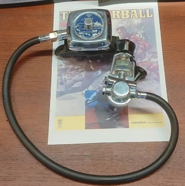 equipped with Q's aquatic propulsion dive rig, dive mask, dive knife,