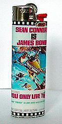 Released in 1999 by Bic corporation, this set of a dozen lighters will light up any Bond fan's life! Each of the lighters features posterwork from the following Bond films: - Dr. No - Thunderball - You Only Live Twice - Diamonds Are Forever - Live And Let Die - The Man With The Golden Gun - Moonraker - A View To A Kill - The Living Daylights - Licence To Kill - GoldenEye * - The World Is Not Enough * * Available only as part of the complete Have a light? Bic does James Bond may have given up smoking when the West won the Cold War, but that hasn't stopped one company from hoping that Bond fans will want to light up with a Bond-themed lighter. Thanks to Club James Bond 007 we can show you what the new 007 lighters look like. Even if you don't smoke they can be used for other purposes. Because as Bond says after giving a bad guy a light in Tomorrow Never Dies, it's a "filthy habit." The series of lighters highlights some of the films throughout the decades including, Diamonds Are Forever, Live and Let Die, Moonraker, A View To A Kill, GoldenEye, Tomorrow Never Dies and The World Is Not Enough. A total of 12 Bond lighters will be released released across the world in October. Most of the lighters use the final poster artwork for the movies, except for The World Is Not Enough which uses the teaser artwork. |