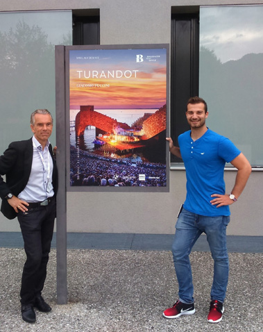 ![]() Guide Stefan and James Bond Gunnar Schäfer at the Bregenzer Festspiele with present 007 glass from James Bond 007 Museum Nybro Sweden