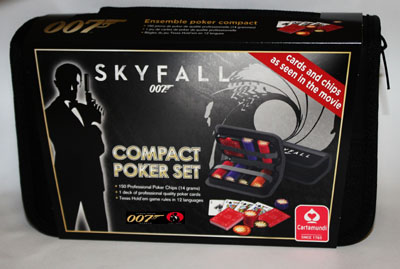 Cartamundi plays the “James Bond” card again in SKYFALL 2012 has 200 14 grams professional casino chips: -75 Chips with value 5, 75 chips with value 10, 25 chips with value 25 and 25 chips with value 50. -2 Decks of professional quality poker cards. -1 Dealer button |