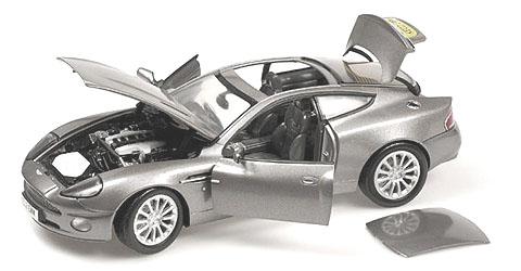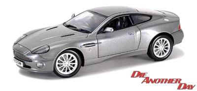 Aston Martin Vanquish James Bond reunites with Aston Martin in the 20th Bond adventure 'DIE ANOTHER DAY'. This 1:18 scale die-cast metal replica of the Aston Martin Vanquish features: Passenger seat with spring loaded ejection system - Retractable front grille with rockets/guns - Slide open hood intake covers with auto tracking guns - opening hood - detailed engine - opening doors - detailed interior - opening trunk - turning wheels - workable steering. Color: Silver. It is packaged in a window display box that features James Bond themed graphics. Manufactured by the Beanstalk Group. Recommended Age: 8+ Price: 1995:- $ 240 |