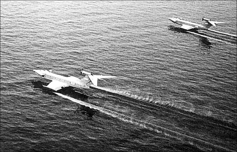 And while the Caspian Sea Monster remains the biggest ground effect vehicle ever built, it was not a one-off of the new technology. On the contrary, the Soviet Union had a major program of wing-in-ground-effect craft, including the proposed building of no les than 120 Orlyonok A90.125 troop transport and assault craft. Only four were in fact constructed, but the pictured craft worked effectively, carrying 15 - 28 tonnes of payload at up to 400 km/h, just above the sea!