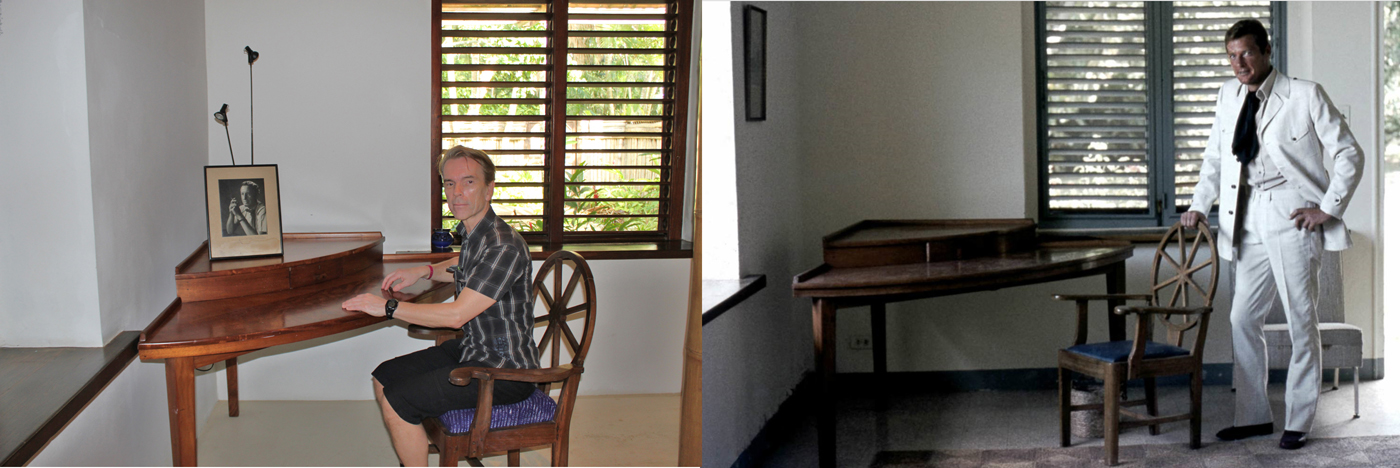Roger Moore Visit Ian Fleming GOLDENEYE house in Jamaica the same room as Bond Gunnar from James Bond Museum Nybro Sweden.