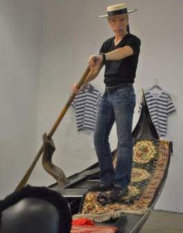 Gondolen står uppallad i lokalerna på museet och den som vill kan ställa sig i aktern och pröva på att vara gondoljär. På land.