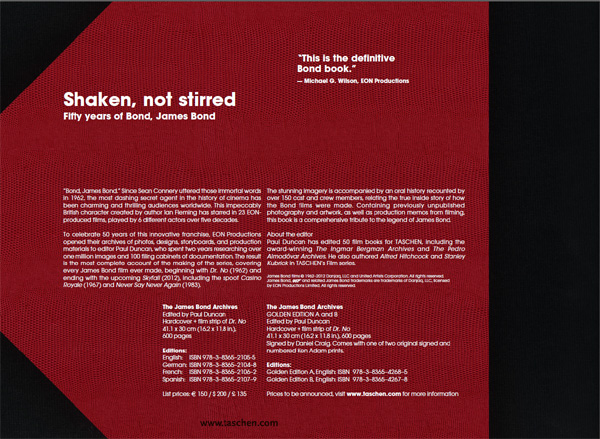 The wealth of on-set photos, unseen stills, set designs, storyboards, production memos, is supplemented by an oral history recounted by over 150 cast and crew members. From producers to stuntmen, directors to production designers, these personal narratives relate the true, inside story from the Bond sets, offering outstanding insight into the personalities and processes behind the most successful and longest-running film franchise in cinema history.