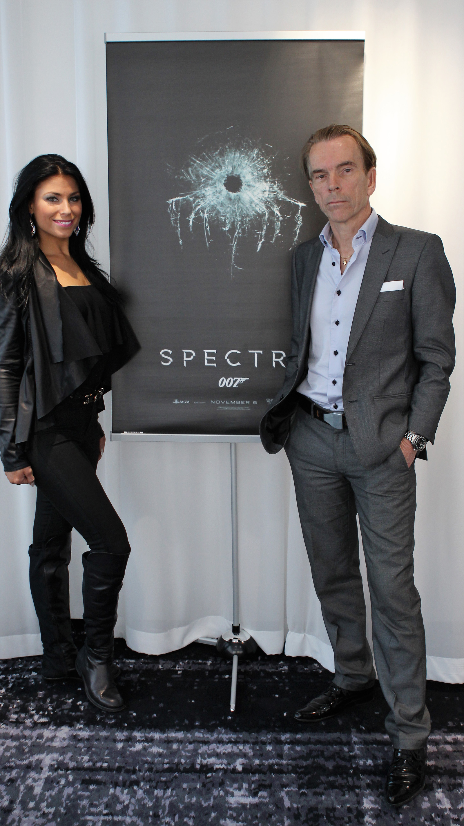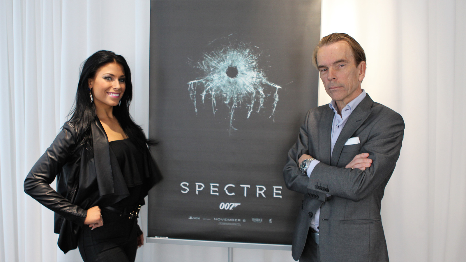James Bond Gunnar Schäfer President/CEO James Bond 007 Museum Nybro Sweden with Jasmine Takacs dancer in Bond movie Spectre Tweet