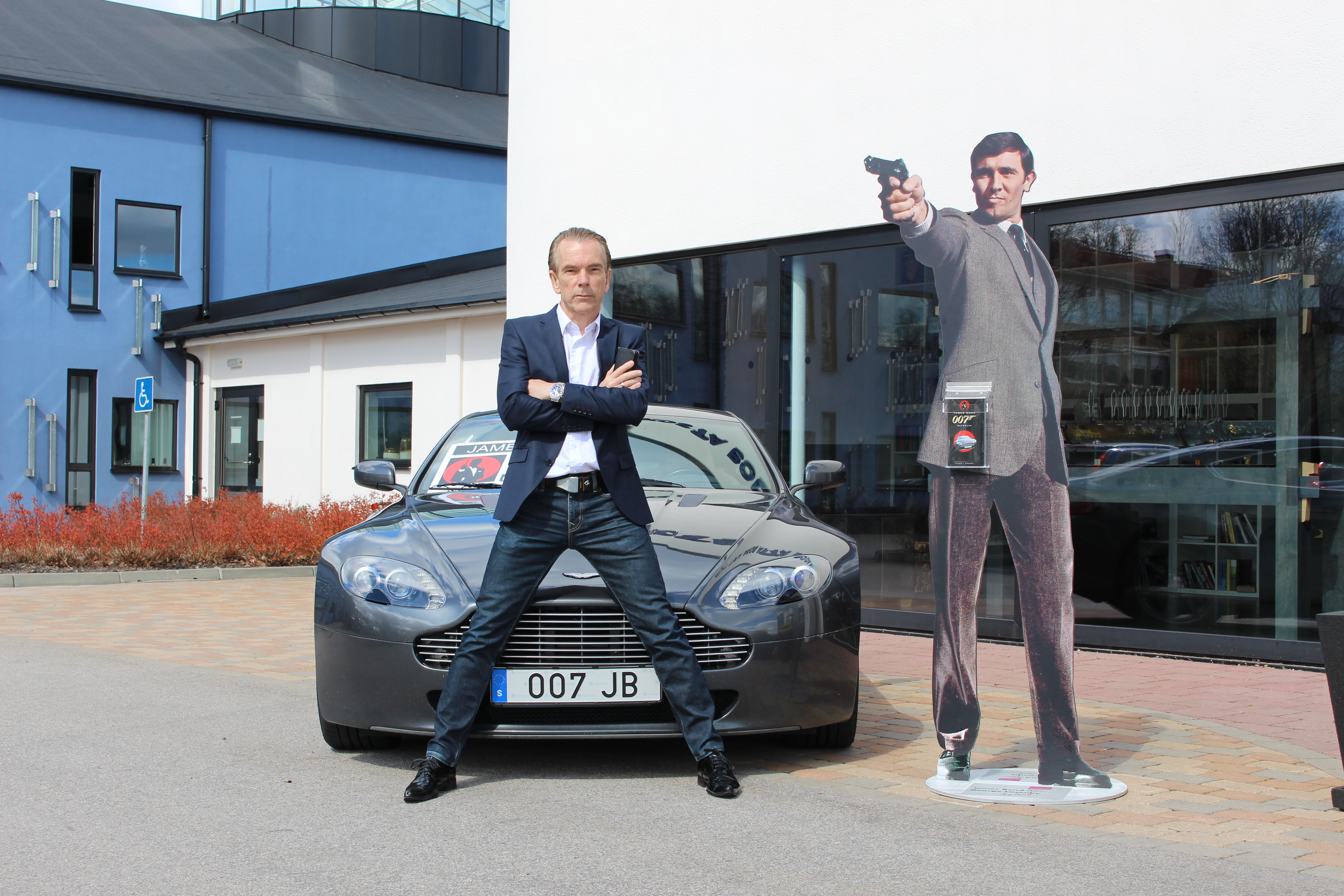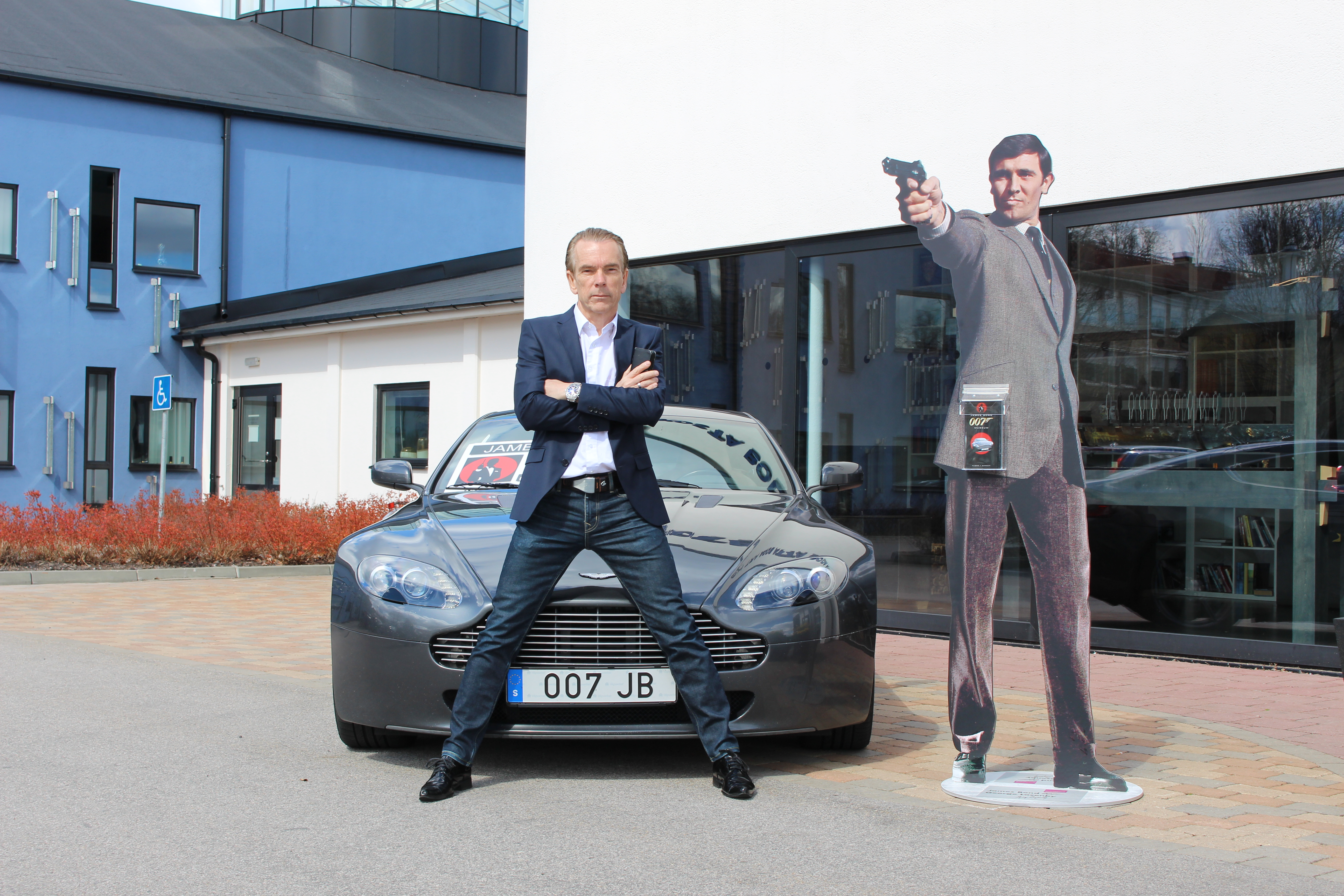![]() President/CEO 007museum James Bond Gunnar Schäfer in front of his Bond car Aston Martin |