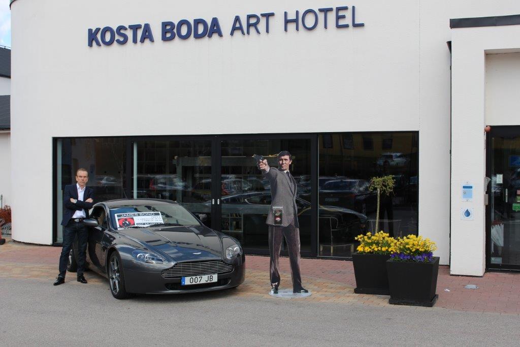 Hotel with Aston Martin 007 JB plate from James Bond 007 Museum Nybro Sweden