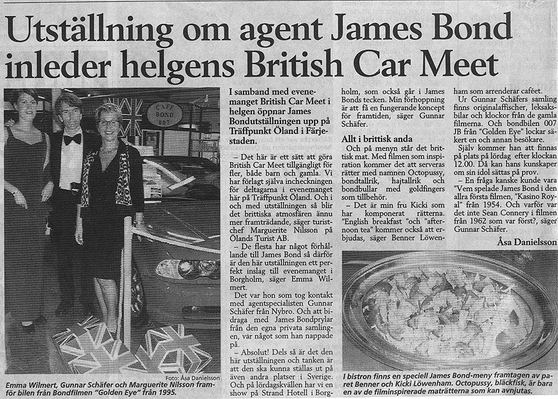 James Bond 007 Museum Nybro, Sweden . www.007museum.com Contact: 007museum@telia.com tel. +46-481-12960 .Open Daily 10.00 - 17.00 (lunch 13-14) Sat 10.00-14.00 Adress: James Bond 007 Museum, Emmabodav.20, 382 45 Nybro, Sweden 0481-12960 |
