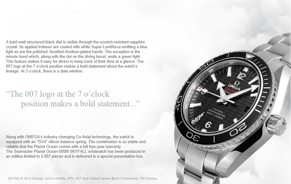 watches, including Bond's blue Seamaster Diver 300M and the black