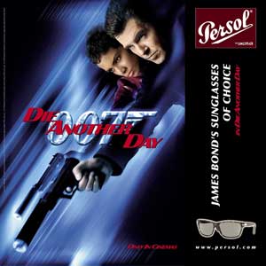 In Die Another Day, Pierce Brosnan wears Persol PE2672-S, which were specially crafted by Persol to tie in the brand characteristics of the eyewear with those of the Bond character - understated elegance and sophistication. James Bond is the ultimate confident, ultra-cool, classic character that is renowned for his impeccable style. The Persols featured on Bond are an accessory that reflects the distinctive style of his character. According to Luxottica, makers of Persol, the company is excited to be a part of one of the most successful film franchises in cinema history. Luxottica worked closely with Costume Designer Lindy Hemming to produce a pair of sunglasses that accurately depicts the elegance and style of James Bond-- creating the ideal partnership between the two brands. A new accessory for Bond and a new addition to the Persol collection, PE 2672-S is an upgraded version of the classic tortoise plastic frame with a dark brown crystal lens complete with the signature silver arrow on the temple. The Persols featured in the film are a universal style that wrap smoothly around the face and compliment most face shapes and sizes. They feature Persol's unique Meflecto Flexible temples that form to one's face to provide a comfortable, perfect fit. While maintaining its reputation for timeless class, Bond's Persols are the perfect accessory for the confident individual. The Persol style featured in the film is available at Sunglass Hut, LensCrafters, leading department stores, independent optical chains, sunglass specialty stores, and other fine optical providers Persol has enjoyed a long love affair with Hollywood appearing in hundreds of films over the years, the first being Marcello Mastroianni's Divorce Italian Style. Since that time, Persol has continued to appear on the lead characters of such well-known films as Terminator 2, Cocktail, The Specialist, Goldeneye, The Postman, and Bandits. Die Another Day, the latest 007 adventure, is directed by Lee Tamahori ("Once Were Warriors", "The Edge", "Along Came A Spider") and deals with betrayal, hi-tech weaponry and military domination on a huge scale. The story begins in the