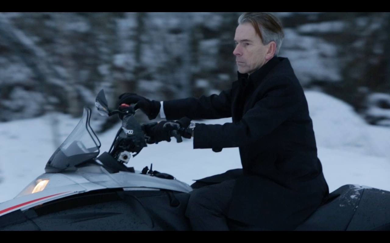 Bond poster with Pierce Brosnan sit on the Ski-Doo snowmobile and some