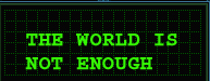 Bloppers Fakta + Preliminära titlar på denna film var både Pressure Point och Dangerously Yours. Sedan valde man The World is Not Enough, som är släkten Bonds motto, hämtat från Ian Flemings OHMSS-roman. |
