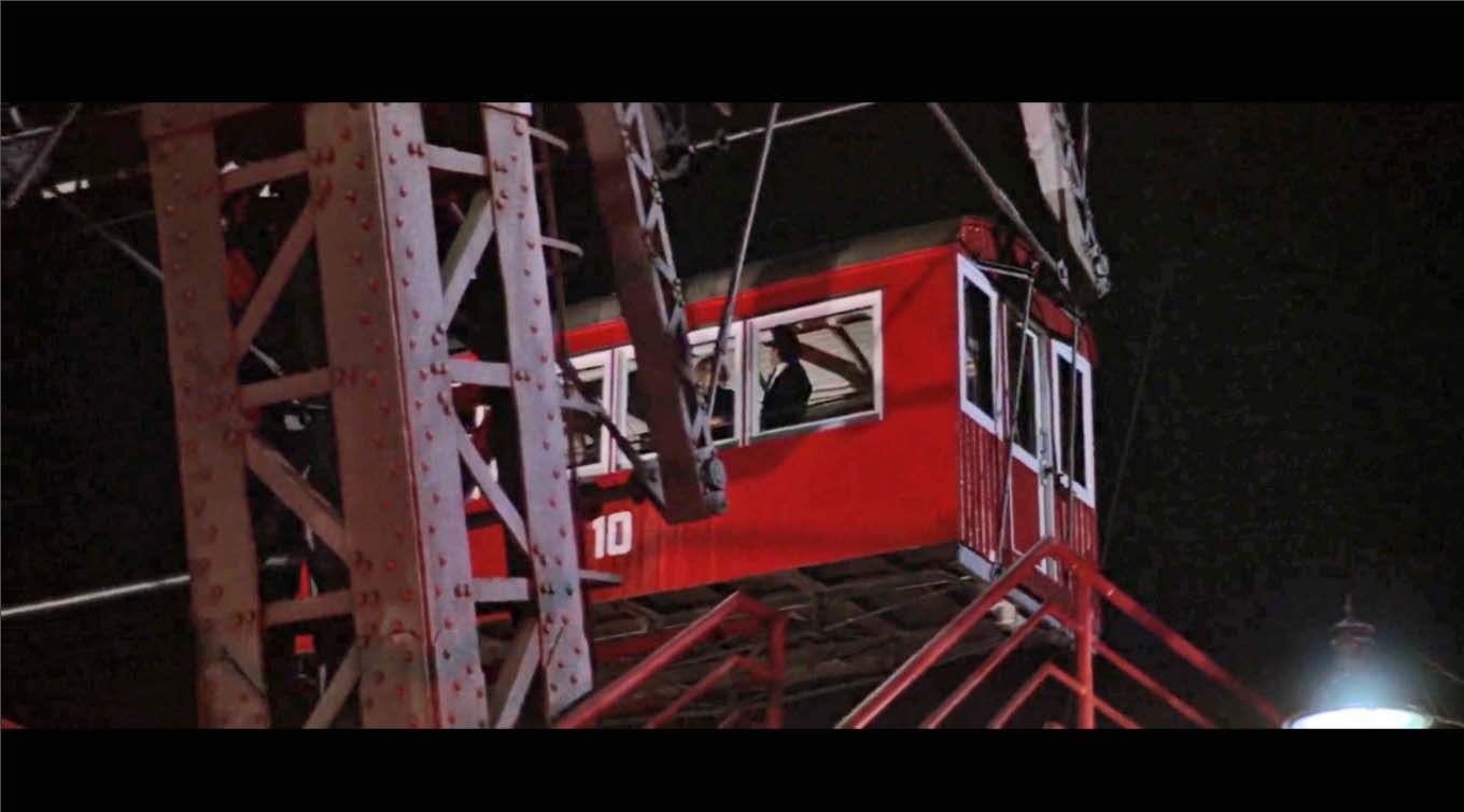 The couple eventually end up in the Prater – Vienna’s large amusement park – where Bond wins a large cuddly toy on the shooting range and takes Kara for a ride on the giant ferris wheel. He arranges for the wheel to stop at the top, giving him an opportune romantic moment to “kiss the girl.”