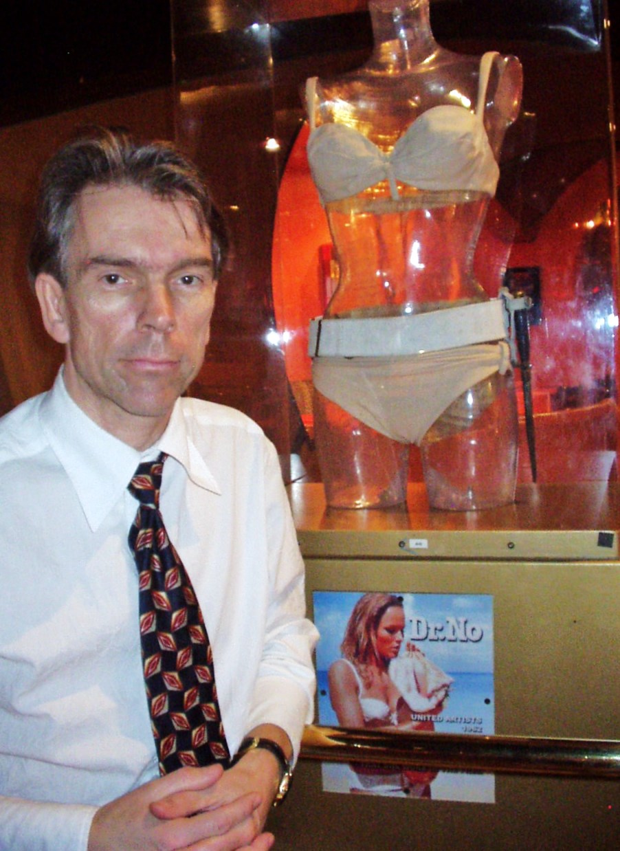 Sean Connery Pierce Brosnan Ursula Andrews bikini from Dr No in Planet Hollywood in London with James Bond Gunnar Schäfer
