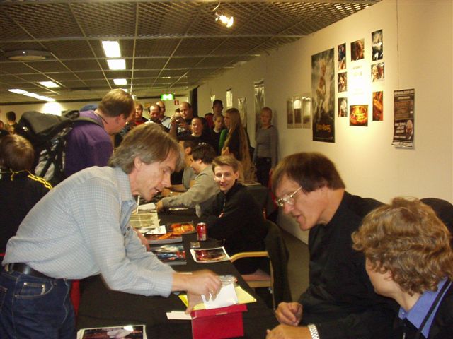 ![]() Gunnar Bond James Schäfer talk to Richard Kiel (Jaws) in Pinewood studios 21/11-2004 and given him a Jaws plate in glassgral gift from James Bond 007 Museum in Sweden, Nybro.
