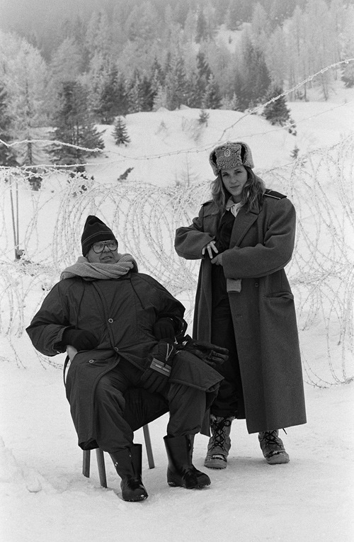Barbara Broccoli and her father, Albert 'Cubby' Broccoli on location in Austria for The Living Daylights