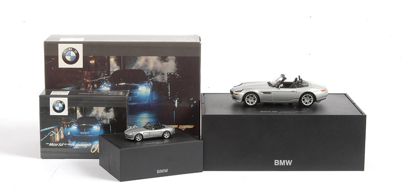 1/43Rd Scale Kyosho "James Bond" 1/43rd scale BMW Z8 taken from the film "The World is not Enough" and another but 1/87th scale Herpa - both are Mint including presentation plastic cases, outer carded film strip boxes. Kyosho "James Bond" BMW Z8 Taken From The Film |