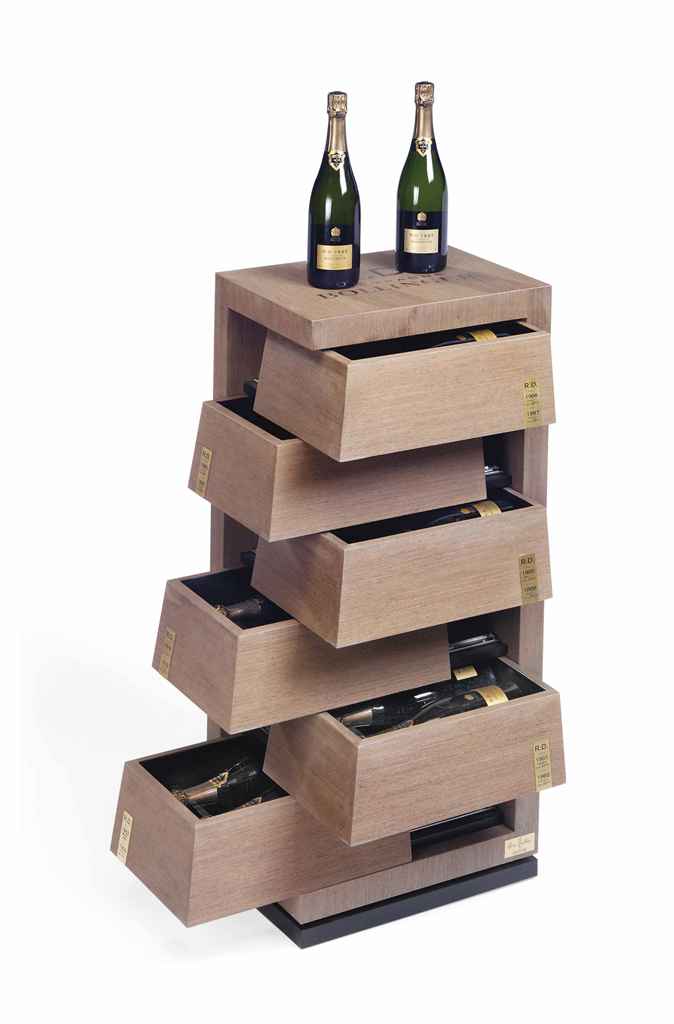 Specially designed wooden frame with six boxes, each containing two bottles Bollinger R.D of different vintages. This is number 9 of the limited edition of 12 cases made.| “Bollinger RD…the best!” – General Georgi Koskov (double-crossing,