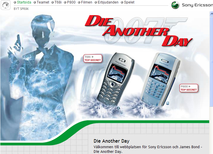 In August 2006, Sony Ericsson also teamed up with James Bond to launch the limited edition James Bond Casino Royale silver K800i Cyber-shot™ camera phone and in November 2002 the Sony Ericsson P800 and T68i mobile phones were used by several of the cast in the 20th James Bond film, Die Another Day.
