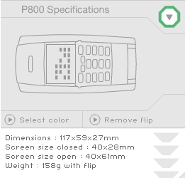 P800:s display är. Med 40 x 61 mm (208 x 320 bildpunkter) finns