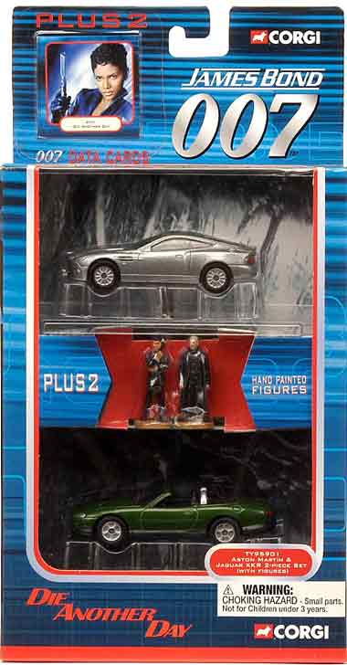 James Bond 007 Twin Pack (TY95901) This set is produced from new tooling and replaces the two starring cars from the 20th and latest Bond blockbuster, Die Another Day. The set comes complete with a pair of painted figures to complement your own display, and is accompanied by two collector data cards, with a various statistic of interest to any follower of the 007 cult. This set is produced from new tooling and replaces the two starring cars from the 20th and latest Bond blockbuster, Die Another Day. The set comes complete with a pair of painted figures to complement your own display, and is accompanied by two collector data cards, with a various statistic of interest to any follower of the 007 cult.