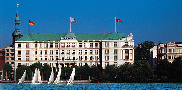 Hotel Atlantic Kempinski Hamburg, Germany from Bondmovie Tomorrow Never Dies 1997 visit by James Bond Gunnar Schäfer 007museum Nybro Sweden twice