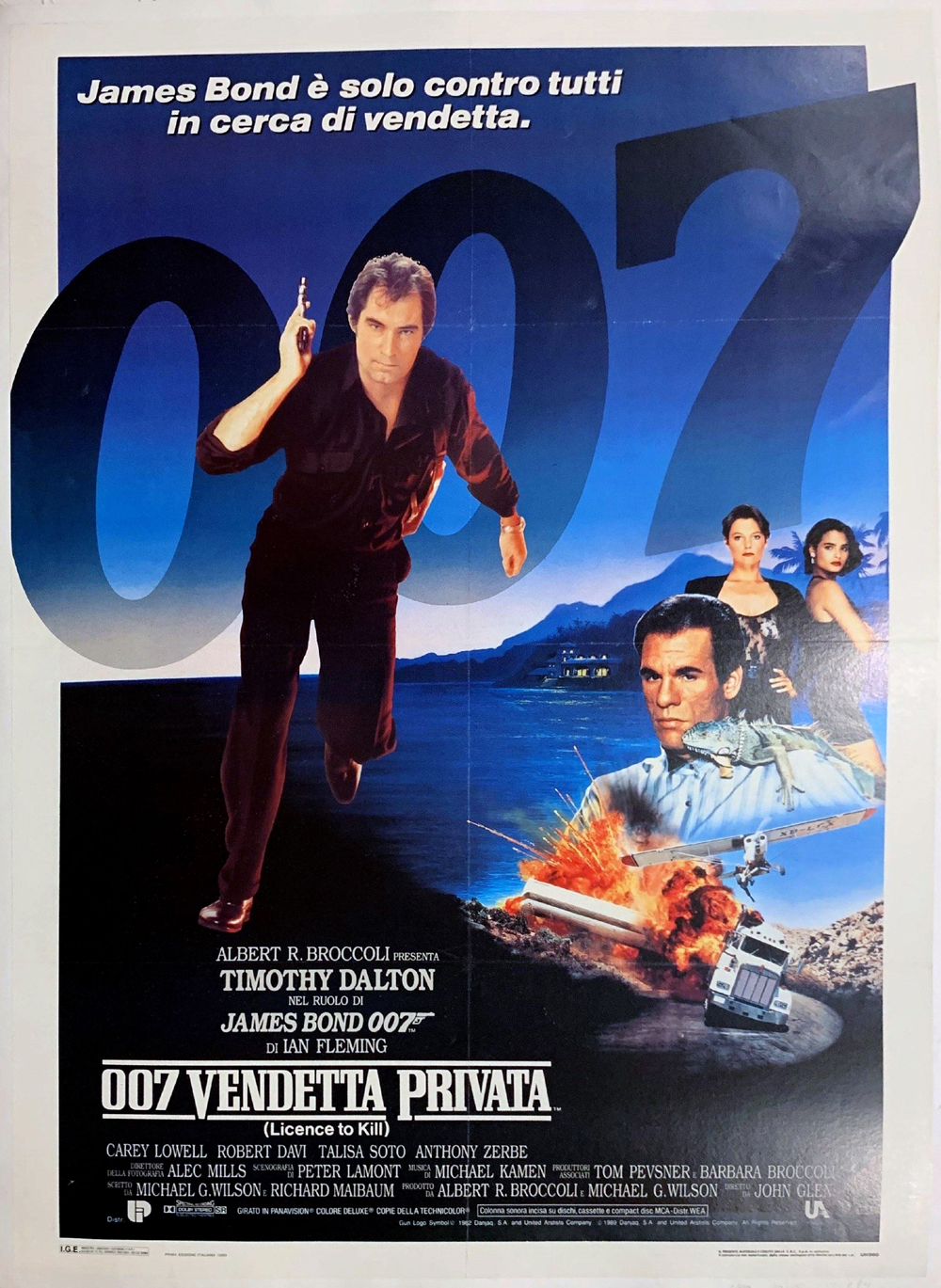 Italian Movie Poster "License To Kill" (1989). 007 Vendetta Privata License To Kill Orginal Poster 39 x 55 in (99 x 140 cm)