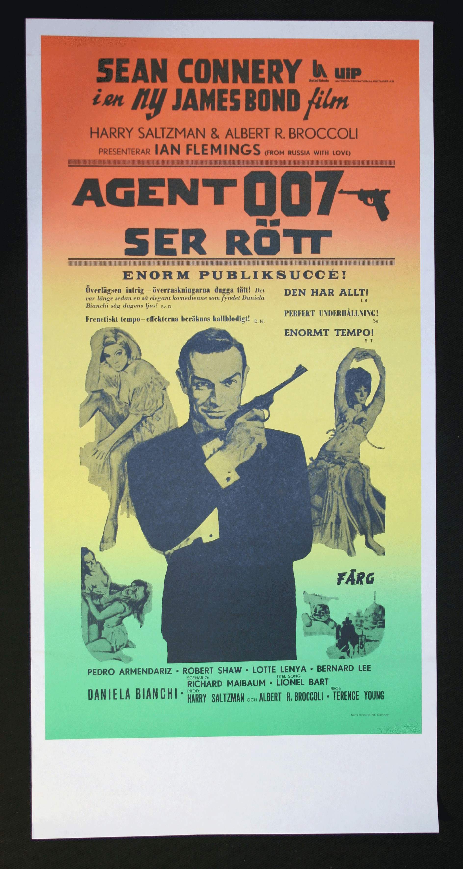 1963 AGENT 007 SER RÖTT From Russia With Love R78 32x64cm Poster 32x64cm NM INSERT - ReRelease 1978 Sean Connery, Daniela Bianc Nr : 007-70030 NARVA TRYCKERIET STOCKHOLM 1978 |