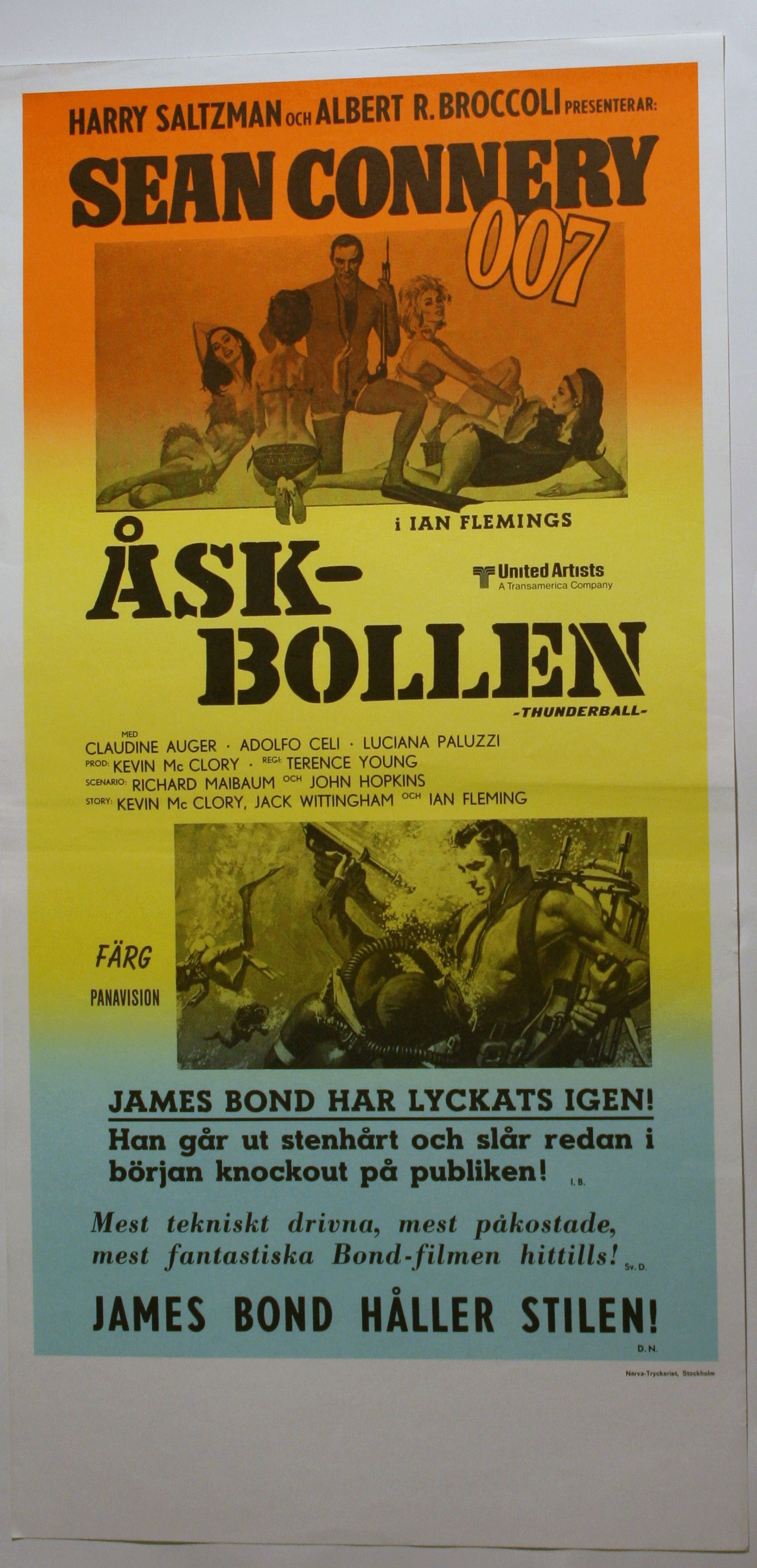 1965 ÅSKBOLLEN. Original Poster THUNDERBALL R74 32x64cm - Åskbollen/Thunderball Poster 32x64cm NM INSERT ReRelease 1974 Sean Connery, Claudine Auger Nr : 007-70060 3 st i lager |