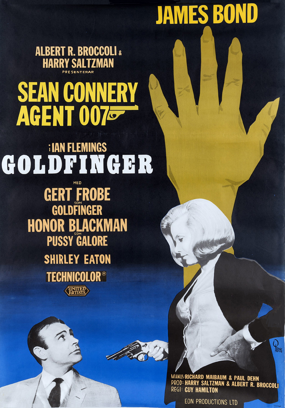 1964 GOLDFINGER R67 70x100cm, Goldfinger Poster 70x100cm RO 1-sheet 27x40 ReRelease 1967 Sean Connery, Honor Blackman, Gert Fröbe, ![]() James Bond Nr : 007-70050 7 st i lager Tryckeri Småland AB Jönköping |