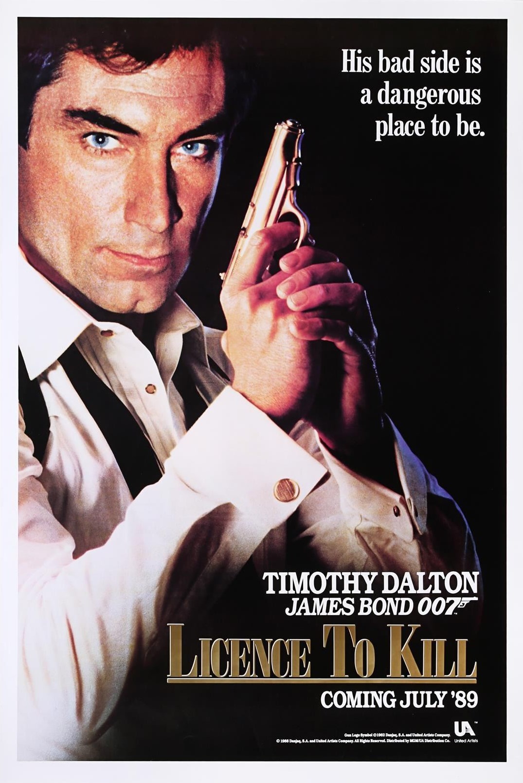 "Licence To Kill" (1989). US One-Sheet Teaser posters and one standard release One-Sheet for "Licence To Kill" (1989). "Coming July '89" text. Orginal Poster Poster 70x100cm