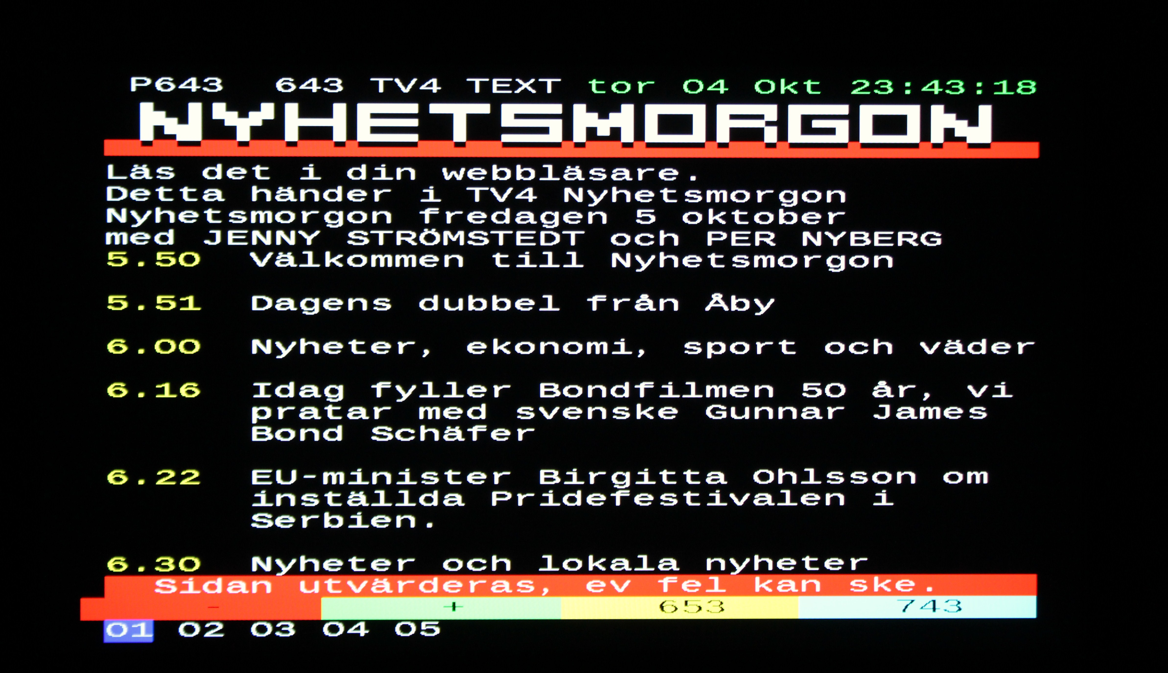 Nyhetsmorgon TV4, 5 oktober 06.15 James Bond 50 år och svenske James Bond