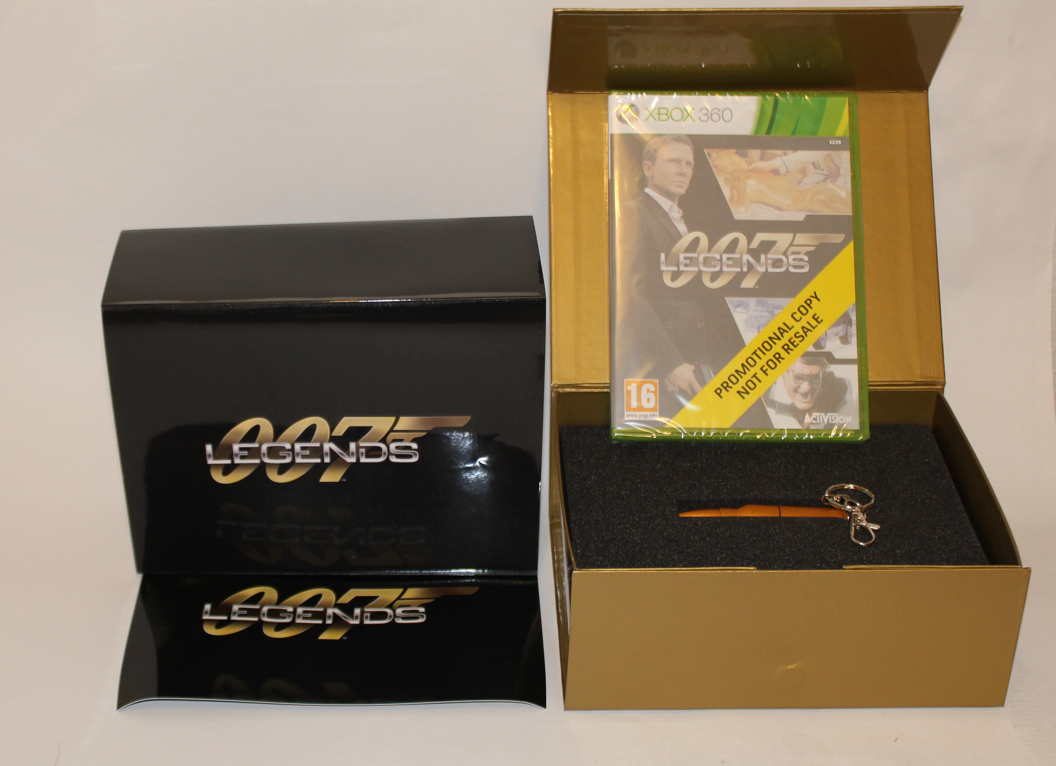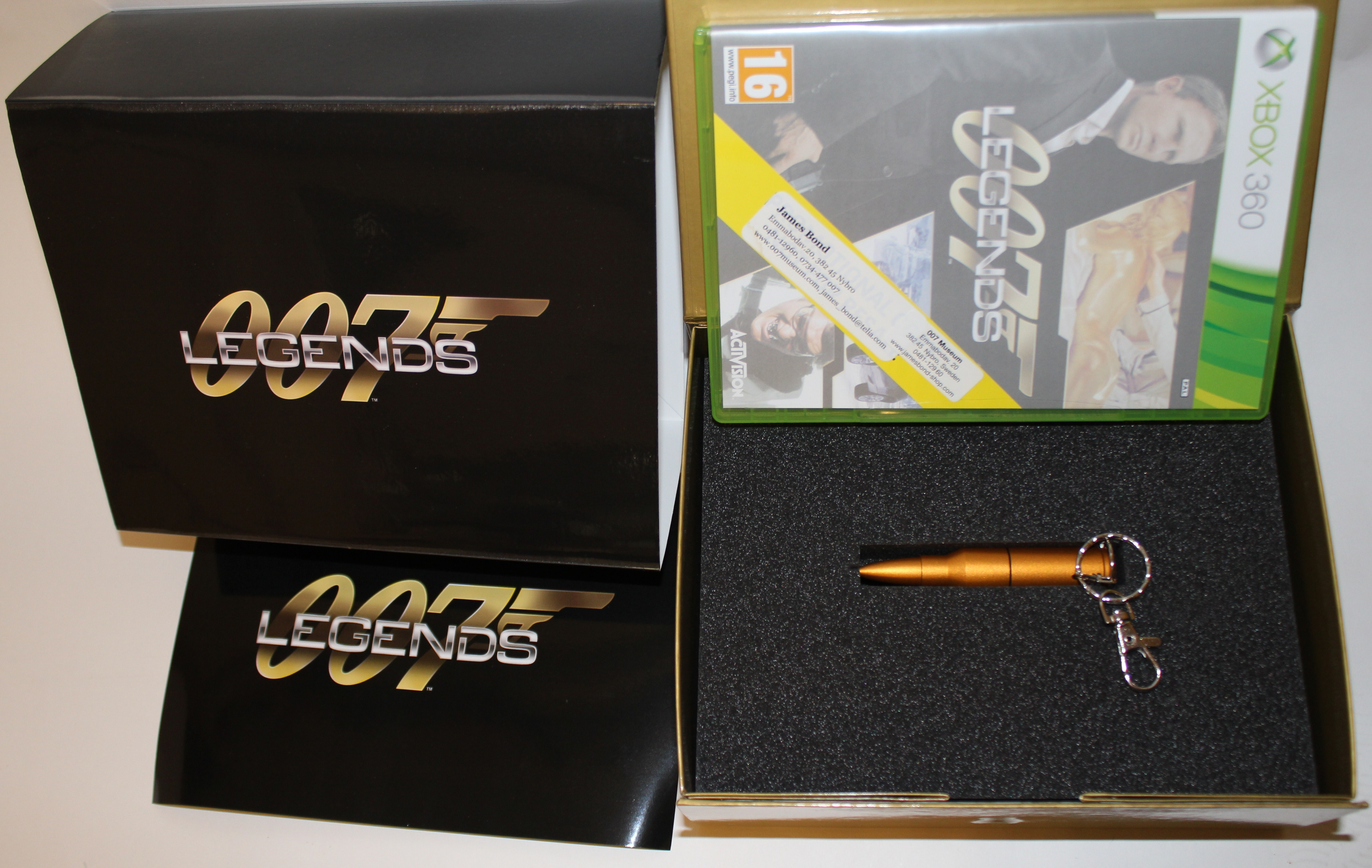 distinctive metal-edged case. Images from Bond movies 1-22 are spread across