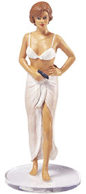 James Bond 007 - Honey Rider The moment when the statuesque Honey Rider emerges from the surf to make her entrance into the first James Bond film, Dr No, must surely be one of the most memorable images associated with the Bond films of the 1960's - and one against which all subsequent Bond girls would be measured. Honey's father has disappeared in mysterious circumstances at Crab Key, a small island off Jamaica, where Dr NO operates a bauxite mine, so she willingly helps Bond to infiltrate Dr No's base. She proves to be a worthy companion for Bond, surviving the treacherous swamps of Crab Key, the flame-throwing 'Dragon' swamp vehicle and an attempt by Dr No to leave her to drown in his disintegrating and rapidly flooding control room. She is last seen happily floating away with Bond in a small boat which the pair have elected to release from the tow line of their rescuers! A potent blend of danger, excitement, glamour and escapism, the Bond 007 movies have an enduring appeal which stands the test of time.Each figure is 75mm (3 inches) tall and features a clear pedestal with the character name. Cast in fine metal and carefully handpainted for realism. Pris : 998:- US :$99 Nr : 007-90220 |
