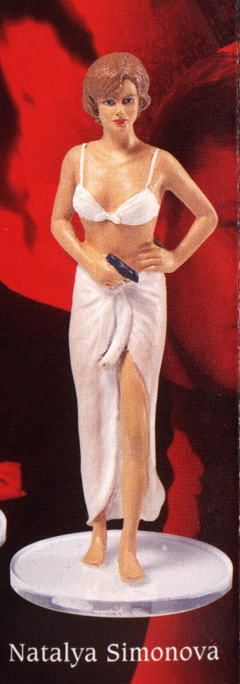 James Bond 007 - Agent 006 (Sean Bean) Once, Alexander Travelyan was Bond's Secret Service colleague. But, in an attempt to blow up a Soviet nerve gas facility Trevelyan is trapped and Bond leaves him for dead, ruthlessly setting the explosive timers which he knows will destroy the plant and Trevelyan too. Now, he's back - his face marked by a clumsy skin graft - and determined to have his revenge! As head of the Janus Crime Syndicate, 006's aim is to bring off a catastrophic worldwide 'bank robbery' by breaking into computer systems - then to erase any records of the transactions by setting off a space-based weapons programme known as GoldenEye. And to do this, he must have the disc which provides access to the codes which will threaten world peace and stability - the GoldenEye. A potent blend of danger, excitement, glamour and escapism, the Bond 007 movies have an enduring appeal which stands the test of time. Each figure is 75mm (3 inches) tall and features a clear pedestal with the character name. Cast in fine metal and carefully handpainted for realism. Pris : 998:- US :$99 Nr : 007-90240 |