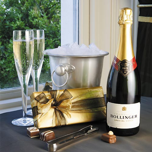 ![]() Bollinger Champagne cooler and champagne glasses |
