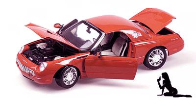 Ford Thunderbird 2002 Bond girl Jinx (Halle Berry) will be drivng the newly released Ford Thunderbird in the James Bond film 'Die Another Day'. This 1:18 scale die-cast metal replica by the Beanstalk Group features an opening hood with a detailed engine, opening doors with a detailed interior, opening trunk, removable hardtop, workable steering, turning wheels, and other outstanding details. Color: Terracotta. It is packaged in a window display box which features James Bond themed graphics. Recommended Age: 8+. Price: 1995:- $ 240 |