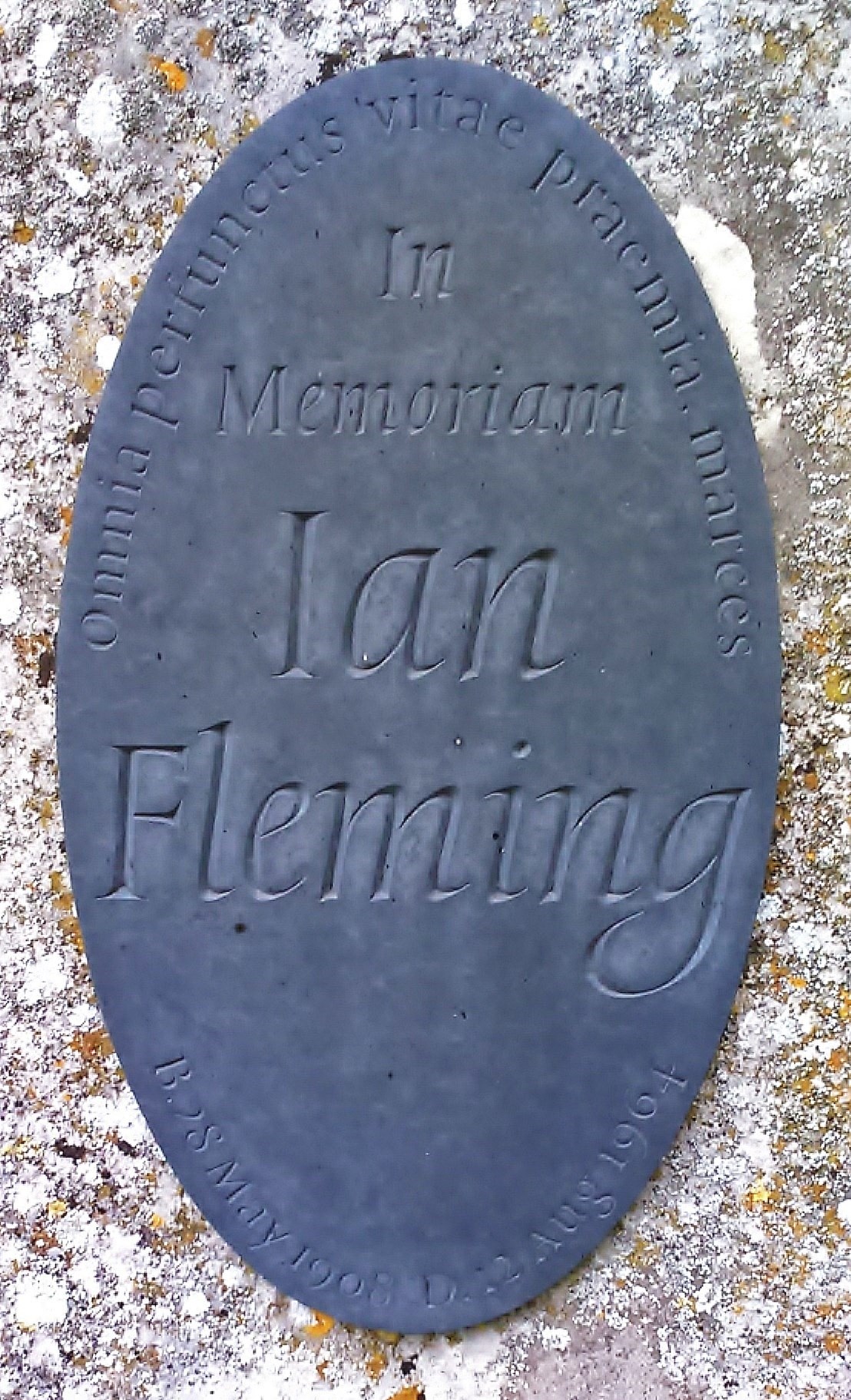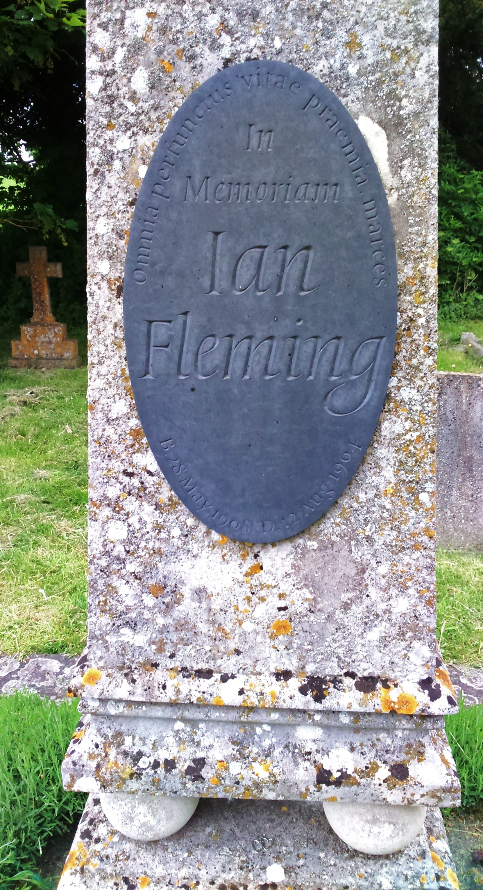 The memorial simply reads: "In Memoriam Ian Fleming B 28 May 1908 D 12 Aug 1964.