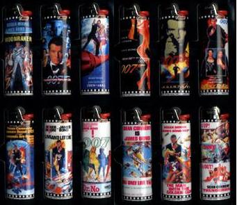 Released in 1999 by Bic corporation, this set of a dozen lighters will light up any Bond fan's life! Each of the lighters features posterwork from the following Bond films: - Dr. No - Thunderball - You Only Live Twice - Diamonds Are Forever - Live And Let Die - The Man With The Golden Gun - Moonraker - A View To A Kill - The Living Daylights - Licence To Kill - GoldenEye * - The World Is Not Enough * * Available only as part of the complete Have a light? Bic does James Bond may have given up smoking when the West won the Cold War, but that hasn't stopped one company from hoping that Bond fans will want to light up with a Bond-themed lighter. Thanks to Club James Bond 007 we can show you what the new 007 lighters look like. Even if you don't smoke they can be used for other purposes. Because as Bond says after giving a bad guy a light in Tomorrow Never Dies, it's a "filthy habit." The series of lighters highlights some of the films throughout the decades including, Diamonds Are Forever, Live and Let Die, Moonraker, A View To A Kill, GoldenEye, Tomorrow Never Dies and The World Is Not Enough. A total of 12 Bond lighters will be released released across the world in October. Most of the lighters use the final poster artwork for the movies, except for The World Is Not Enough which uses the teaser artwork. |