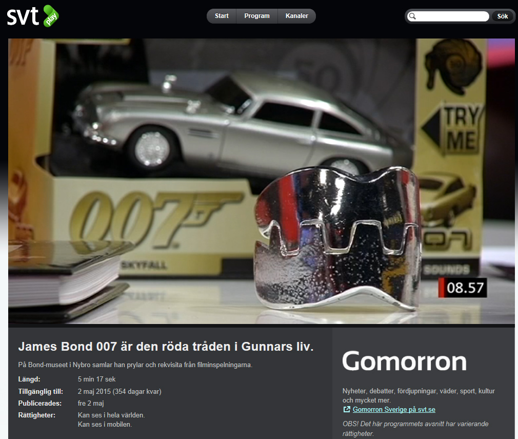 http://beta.svtplay.se/klipp/2014261/james-bond-007-ar-den-roda-traden-i-gunnars-liv