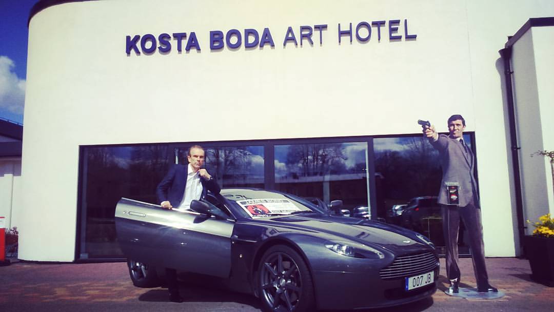 James Bond movie location, on track by James Bond Gunnar Schäfer from Bond Museum Nybro Sweden Lasse Åberg Sällskapsresan Stig-Helmer" träffade Bond och fick Boken "James Bond En Fadersgestalt"